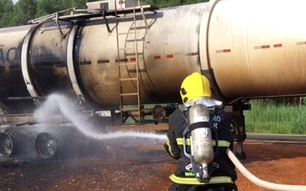 Os bombeiros informaram que ele conseguiu desacoplar o cavalo mecânico da carreta. Ele apontou que o fogo teria começado no sistema de freios da carreta. Bombeiros combateram as chamas com intensidade, por cerca de 15 minutos, utilizando 9 mil litros de água e evitando que o fogo atingisse a carga o que poderia causar explosão.