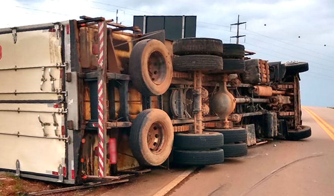 Um caminhão tombou, há pouco, no quilômetro 124 da rodovia federal, em Colíder (157 quilômetros de Sinop). O condutor não ficou ferido e assinou termo de recusa de encaminhamento médico.