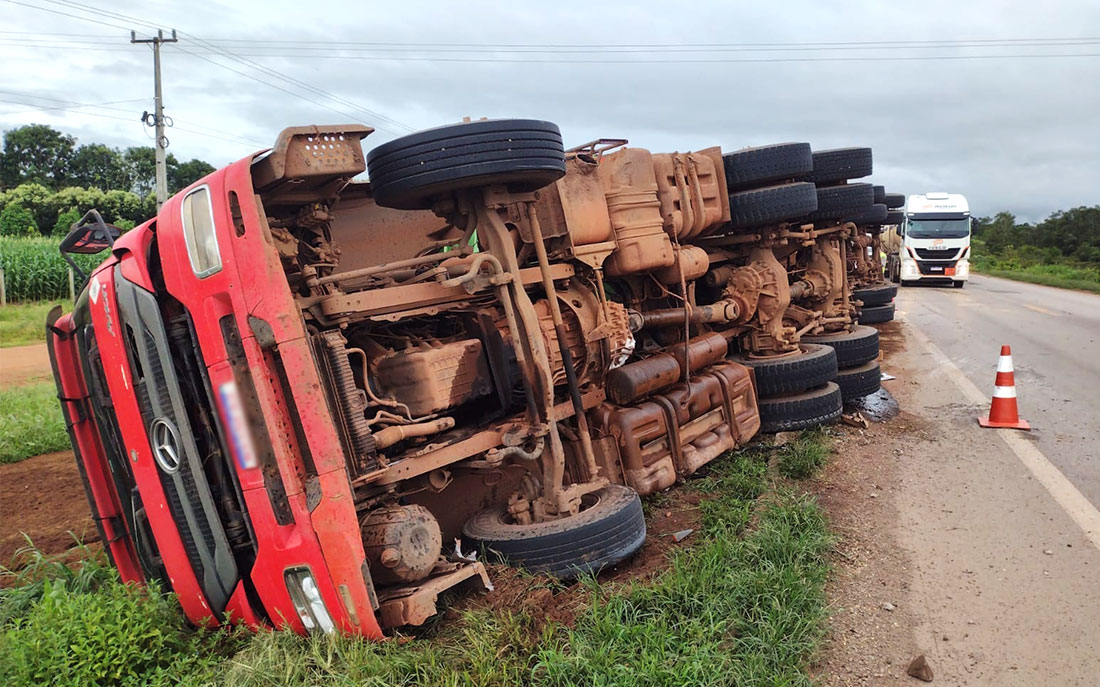 A Mercedez-Benz vermelha tombou, há pouco, no quilômetro 760 da rodovia federal, entre Sinop e Sorriso. O condutor teve alguns ferimentos e precisou ser encaminhado ao Hospital de Sorriso, pela equipe da Rota do Oeste. Ele estaria fora de perigo.