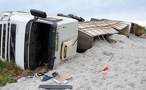 Carreta carregada de algodão tomba na MT-235 em Campo Novo do Parecis - janeiro 2015 (ParecisNet)