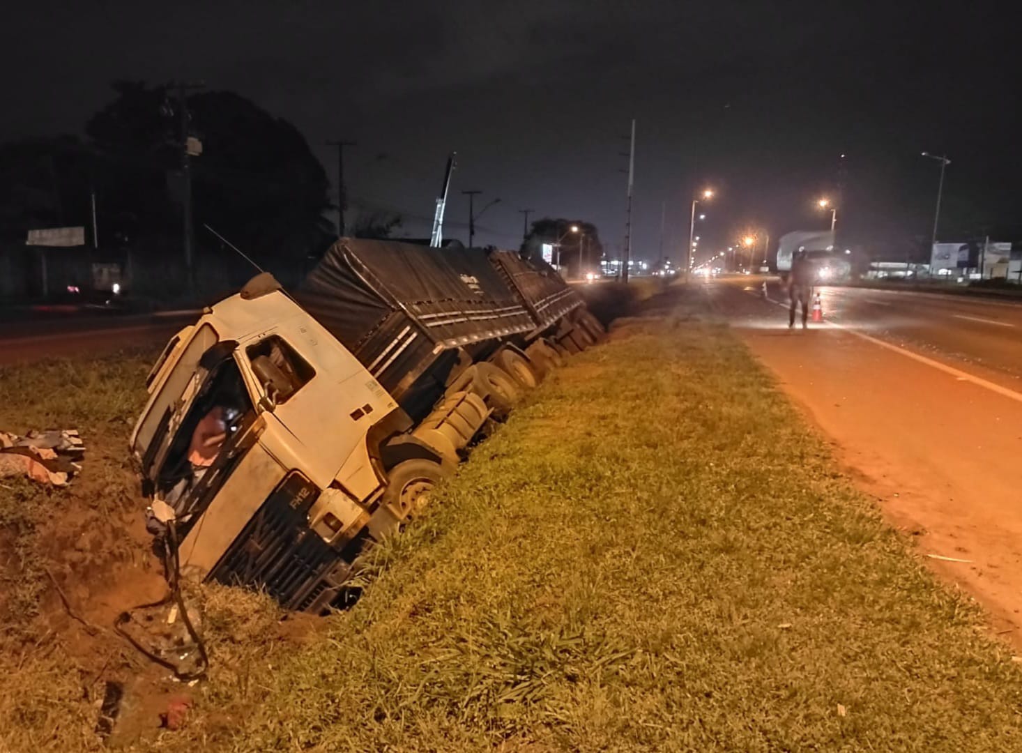 O condutor relatou que trafegava sentido Sorriso, quando se deparou com um caminhão-prancha fazendo uma ultrapassagem. O homem contou que, para evitar a colisão frontal, tentou desviar, mas acabou caindo na vala de escoamento de água.