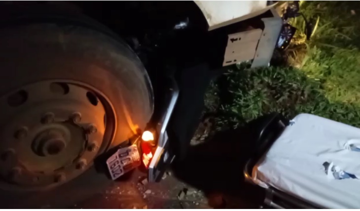 As causas do acidente, que ocorreu há pouco, começam a ser apuradas. A versão que será apurada é que o carreteiro teria tentado fazer uma conversão para entrar na rua Enio Pipino e houve a colisão com a moto, que ficou embaixo do primeiro eixo da Scania. Parte da carreta e da moto ficaram no canteiro que divide a via com a BR-163.
