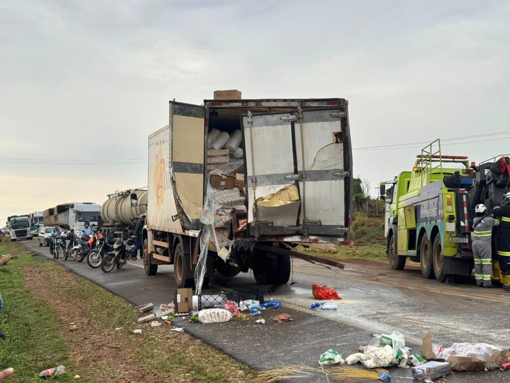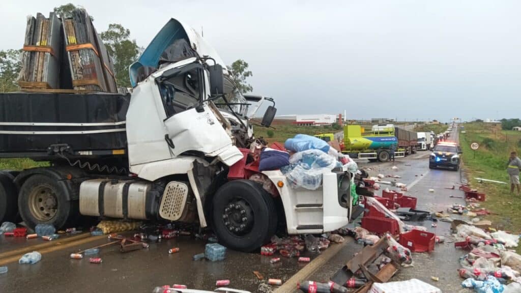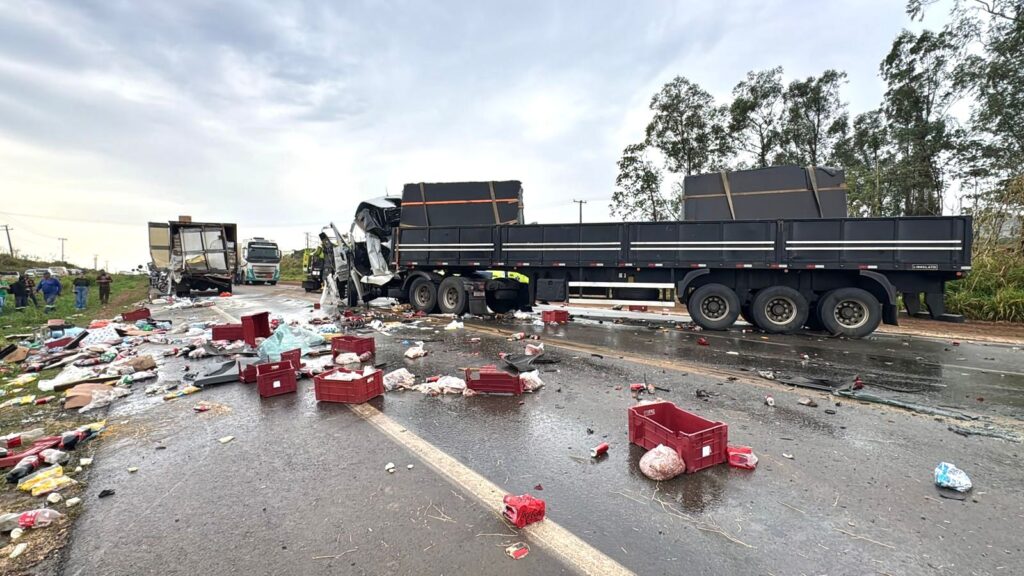 A cabine da carreta ficou totalmente destruída. A dinâmica investigada é que houve a colisão traseira. A Polícia Rodoviária Federal foi acionada para o registro da ocorrência.