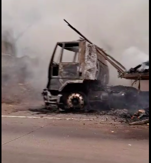 A concessionária que administra a BR-364 informou que foi acionada para atendimento a uma ocorrência de incêndio no cavalo mecânico da carreta. Segundo repassado pela empresa, há suspeita que o fogo tenha começado após problemas na mangueira de combustível do veículo.