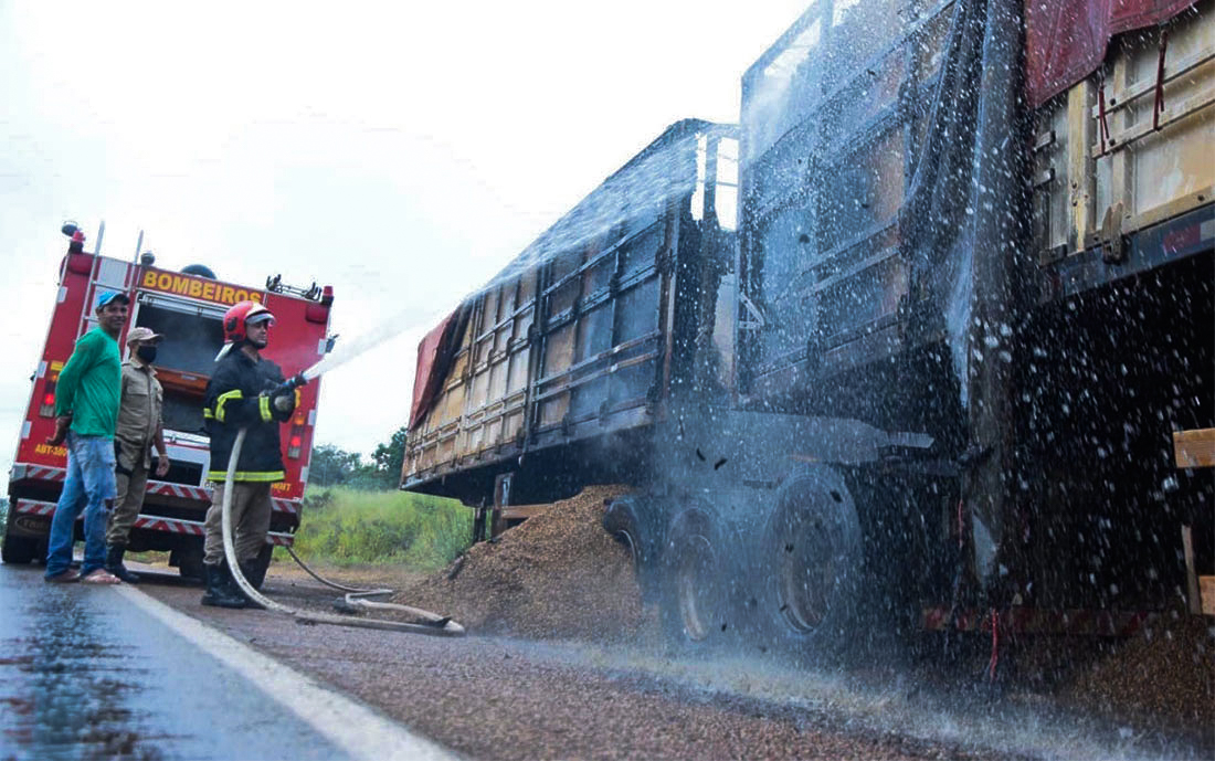 Uma carreta que carregou soja, em Lucas do Rio Verde, pegou fogo, esta manhã, na BR-364 em Rondonópolis (214 quilômetros de Cuiabá). O motorista viajava sozinho e não ficou ferido.
