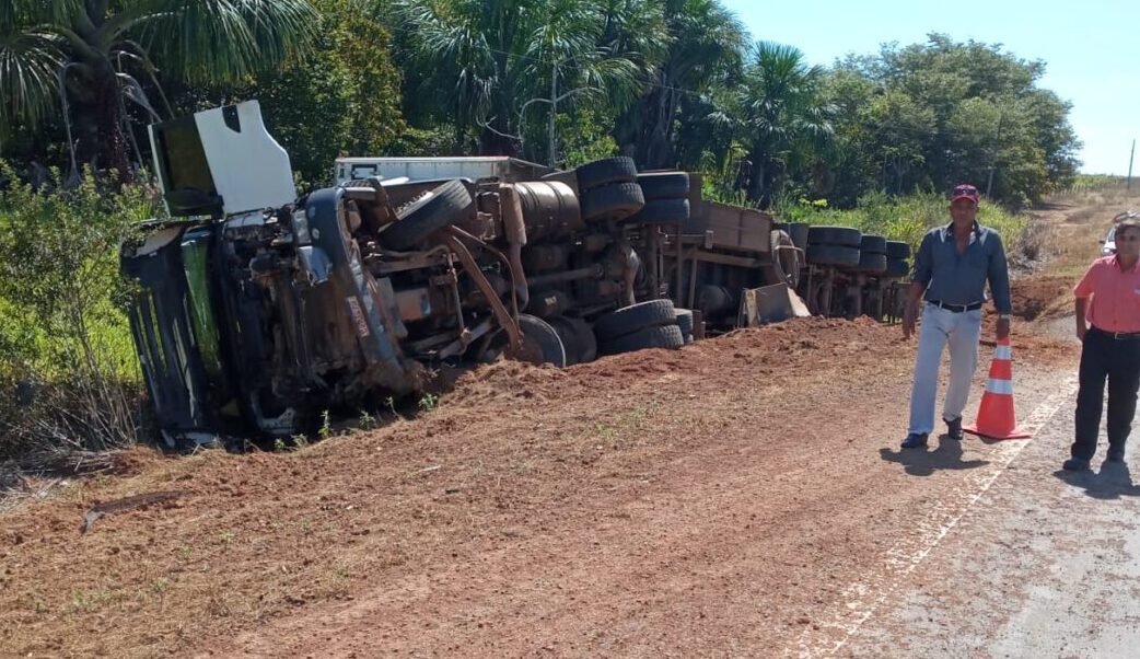 Uma Scania 380 branca tombou na MT-320, no trecho de Carlinda (280 quilômetros de Sinop). O motorista não se feriu e assinou termo de recusa de atendimento médico.