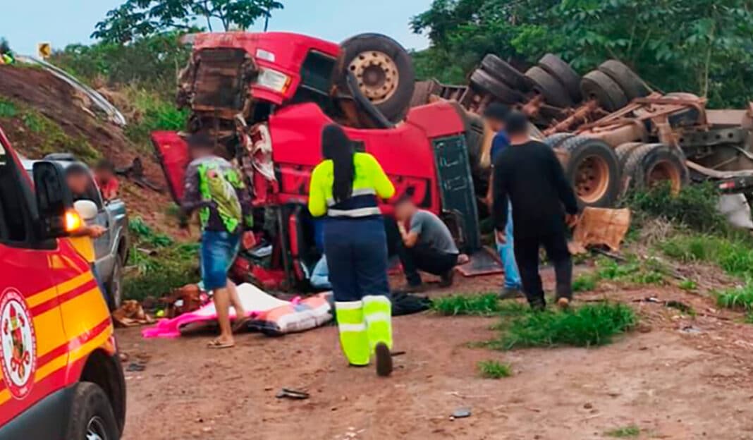 As informações preliminares são de que o veículo de carga teria ficado desgovernado, saiu de pista e acabou tombando às margens. Foi verificado que o cavalo mecânico, assim como um dos semirreboques, ficou com as rodas para cima.