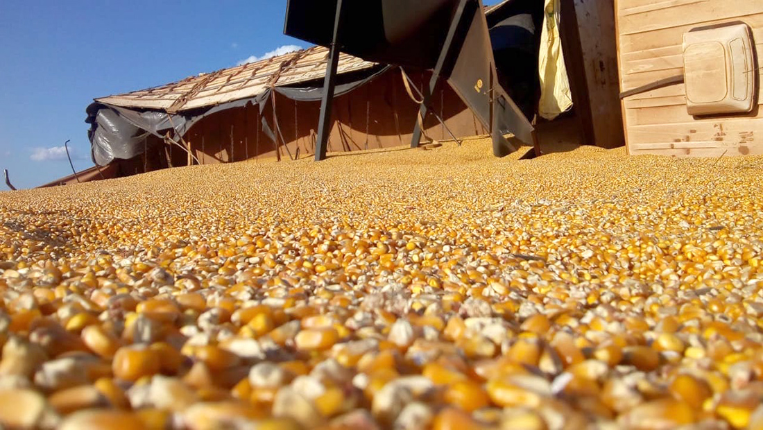 A Mercedes-Benz branca tombou, há pouco, na rodovia federal, nas proximidades do bairro Camping Clube. A carga de milho ficou esparramada às margens da via. Ninguém ficou ferido.