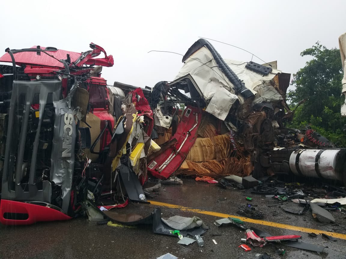 A colisão entre as duas carretas foi pela manhã, no quilômetro 560, em Nova Mutum. De acordo com a concessionária que administra a rodovia, a colisão envolveu uma Volvo de 9 eixos, com placas de Jaciara, e a a Scania G380, placas de Pinhalzinho, que tombou na pista. O carreteiro ficou preso às ferragens e foi retirado pela equipe de resgate da concessionária e levado, em estado grave, a um hospital no município.
