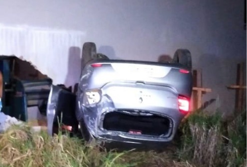 A versão apurada é que o homem perdeu o controle da direção, subiu o meio-fio, invadiu um terreno baldio e atingiu a lateral de concreto de uma empresa. O impacto foi tão forte que parte da estrutura quebrou e o veículo capotou ficando com as rodas para cima.