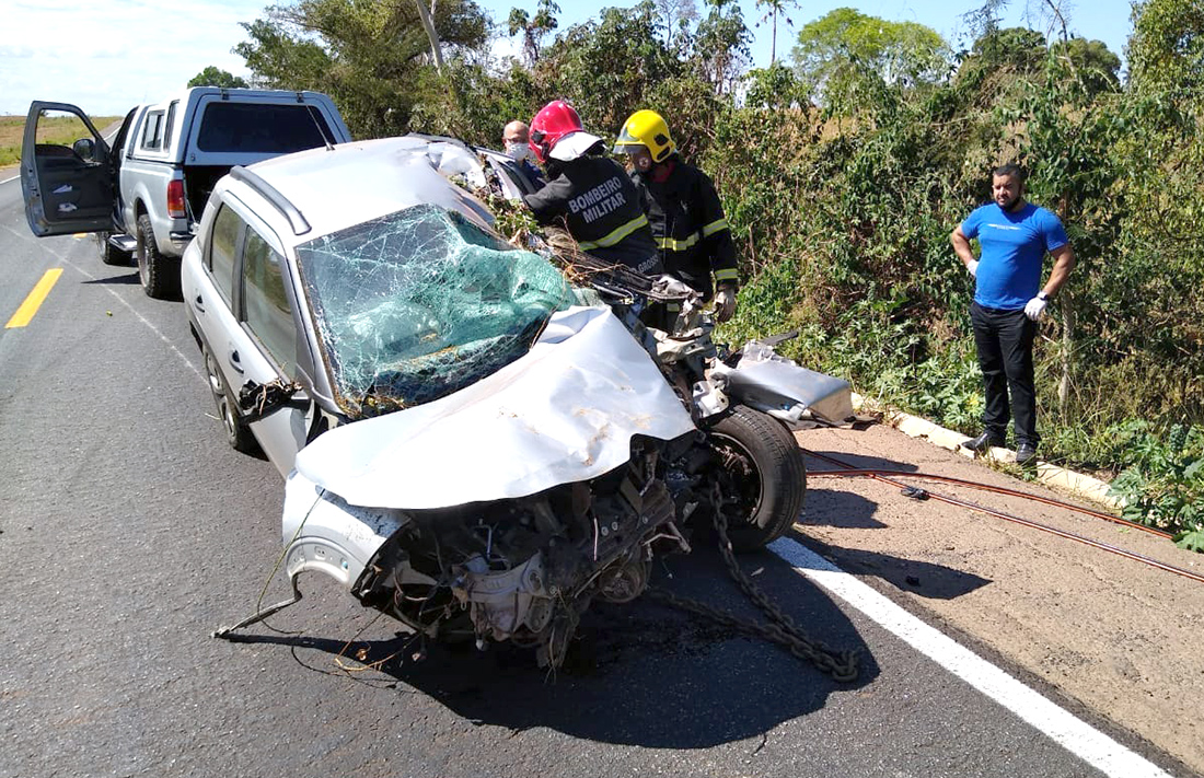 O Citroën C4 prata atingiu uma árvore, hoje de manhã, na BR-364 aproximadamente 5 quilômetros depois de Pedra Preta (207 quilômetros de Cuiabá). A motorista, Aguida Miriande Oliveira Kuhn, de 50 anos, ficou presa às ferragens, não resistiu aos ferimentos e morreu no local.