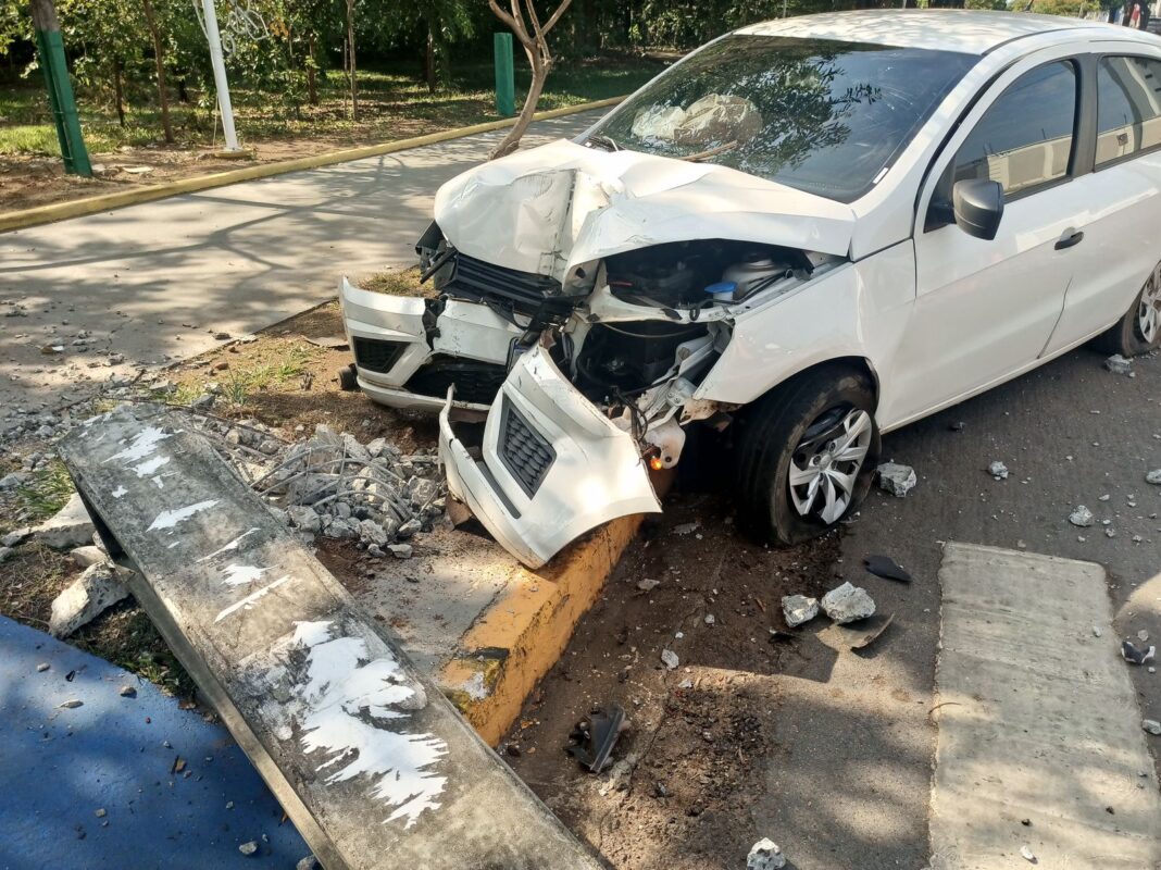 Um VW Gol bateu e danificou um poste de concreto, esta madrugada, na avenida dos Jacarandás esquina com rua das Castanheiras, na região central. Não há informações de feridos.