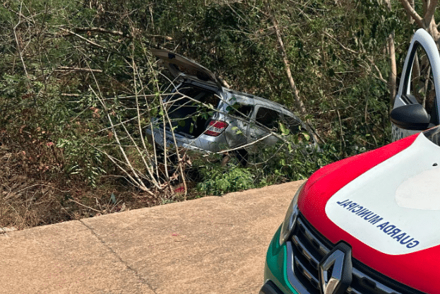 Com o impacto, os dois veículos caíram na ribanceira onde tem um espelho d’água nas margens de um córrego. A motociclista ficou presa aos galhos da vegetação e teve escoriações leves. A condutora do carro conseguiu sair da ribanceira, também com apenas escoriações leves.