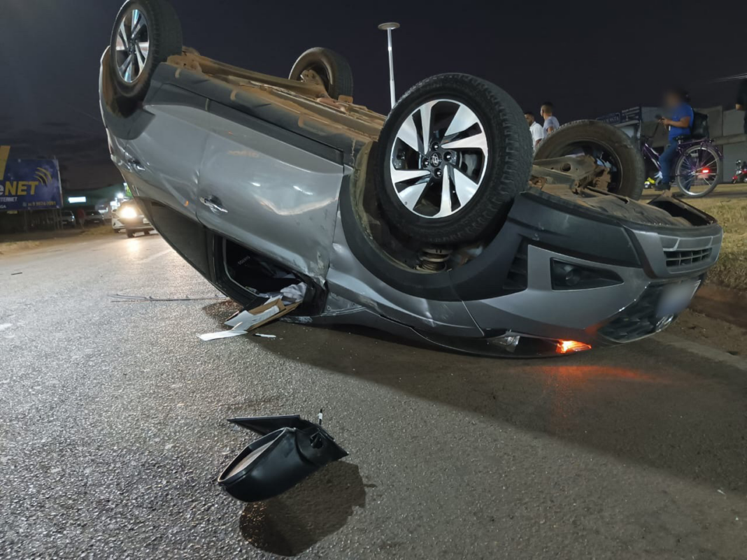 A versão inicialmente apurada é que o HB20 trafegava pela André Maggi, sentido centro, quando houve a colisão com os outros três veículos. Com o impacto, o automóvel capotou parando com as rodas suspensas para o ar. O Gol teve a lateral esquerda traseira amassada, o Ka teve danos na traseira.