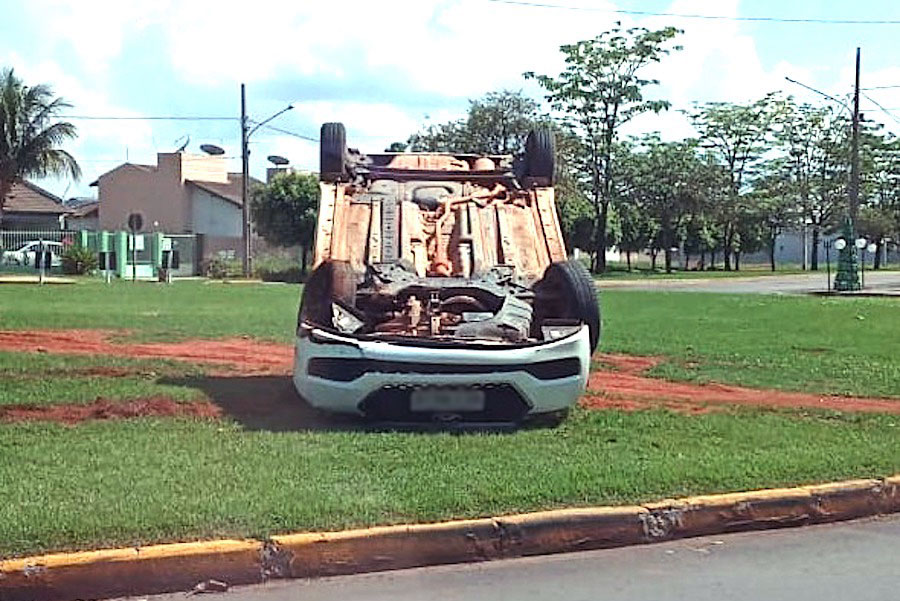 A versão investigada é que os carros colidiram lateralmente quando realizavam a rotatória. Com impacto, o HB20 saiu da avenida, capotou e parou com as rodas para cima. Já o Fiesta subiu no canteiro da avenida das Samambaias e teve danos na lateral.