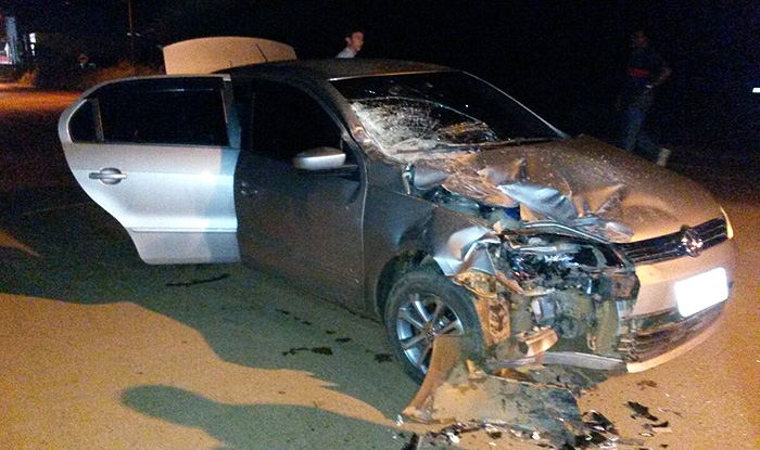 Carro de homem sequestrado colide na traseira de caminhonete em Sorriso – janeiro 2015 (Rafael Sousa)