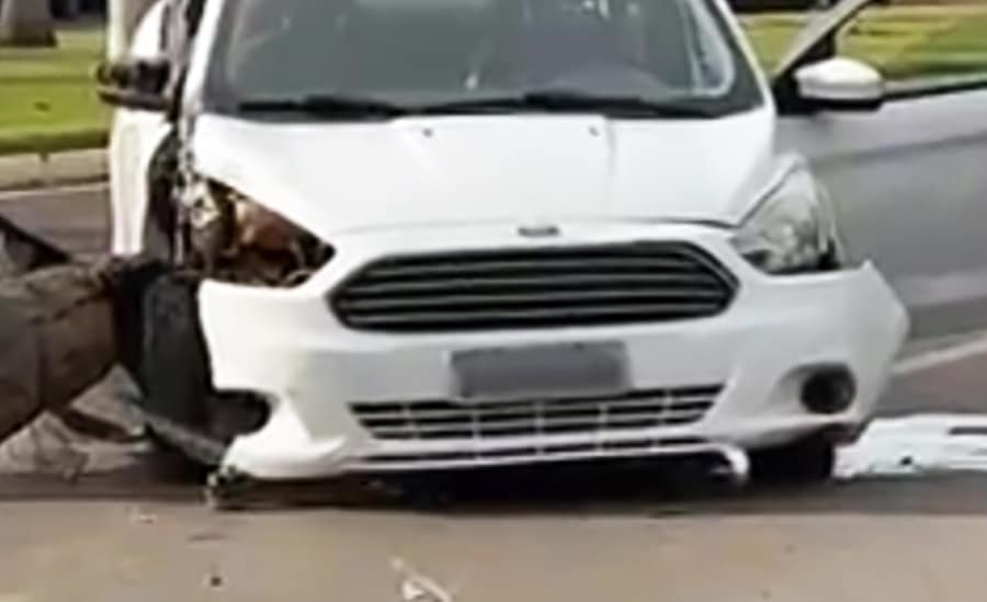 Carro desgovernado atinge poste em Lucas do Rio Verde; condutora é internada