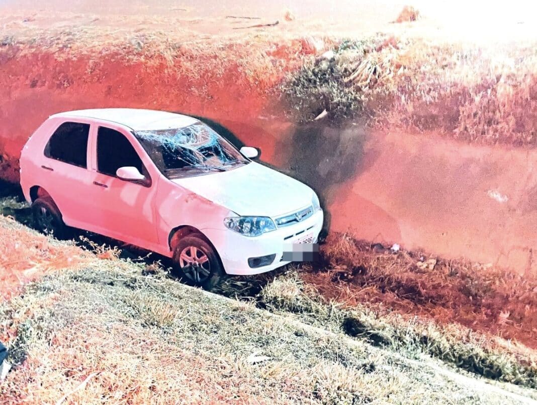 Carro é atingido por outro veículo e cai em vala na BR-163 em Sorriso