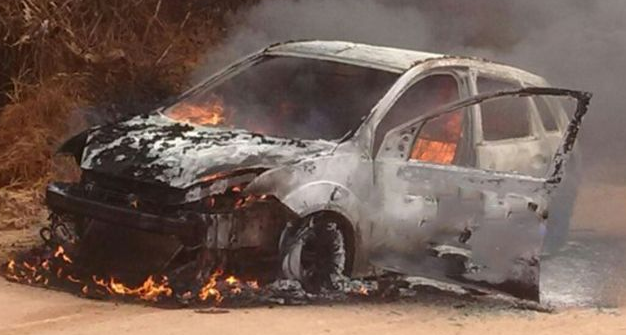 O Ford Fiesta prata pegou fogo, hoje de manhã, na MT-430 próximo ao vilarejo Três Flechas, a cerca de 50 quilômetros do centro de Confresa (1,1 mil km de Cuiabá). O motorista que não teve ferimentos tentou controlar as chamas com um extintor, porém, não conseguiu e o carro foi totalmente destruído.