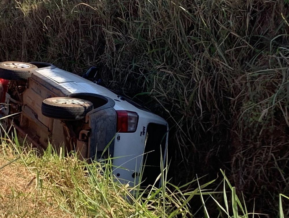 O carro caiu no trecho bem próximo do cruzamento e não estaria em alta velocidade no momento do acidente. A lateral direita ficou mais danificada, além de parte do teto.