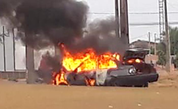 O VW Logus pegou fogo, há pouco, na avenida Blumenau Sul, no bairro Rota do Sol. No carro havia duas pessoas, que conseguiram sair e ninguém ficou ferido. Os bombeiros foram acionados e utilizaram Caminhão Auto Bomba Tanque (ABT) para apagar as chamas.