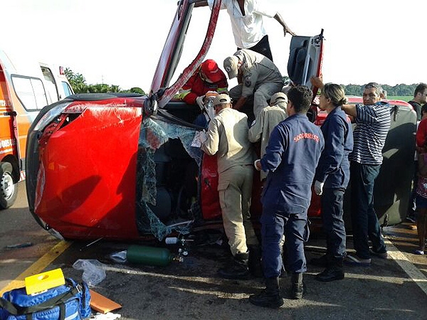 Carro pick-up capota na Br-163 próximo ao Camping Club em SInop – janeiro 2015 (Valdeir Silva)