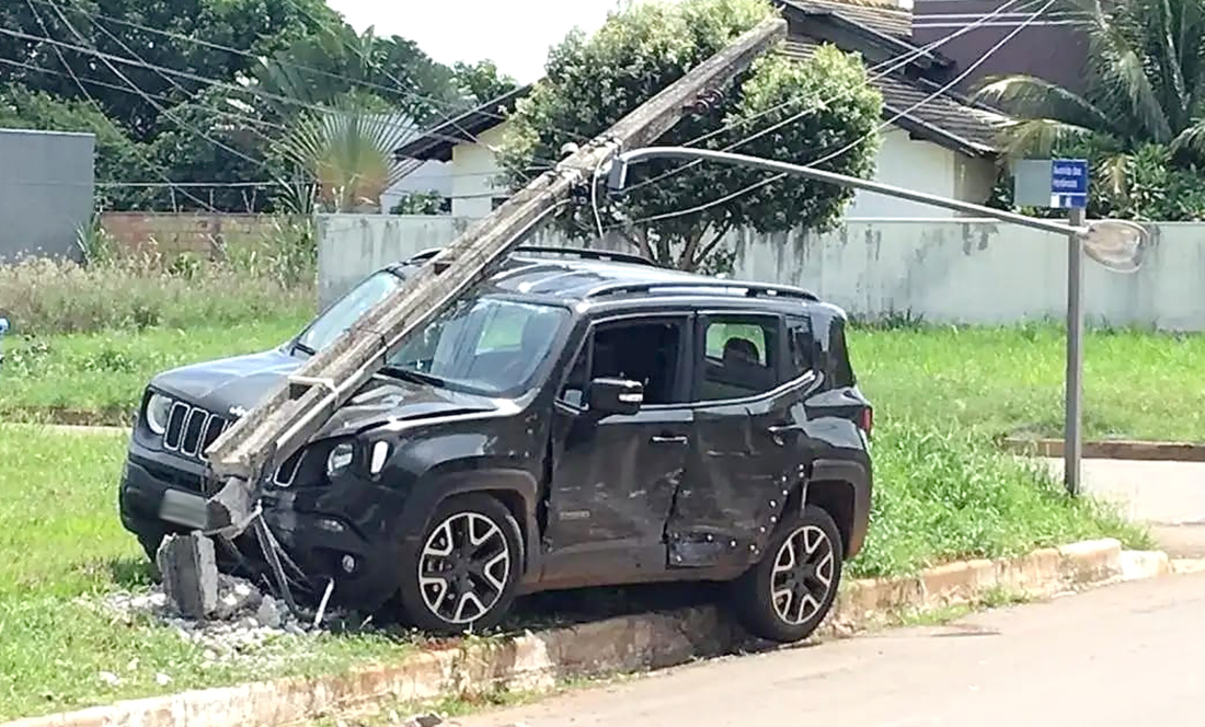 De acordo com informações policiais, a condutora teria perdido o controle da direção após colisão com o VW Gol. Com isso, acabou saindo da avenida e batendo violentamente contra o poste, que ficou completamente destruído. Já o Renegade teve a parte frontal e a lateral esquerda danificadas.