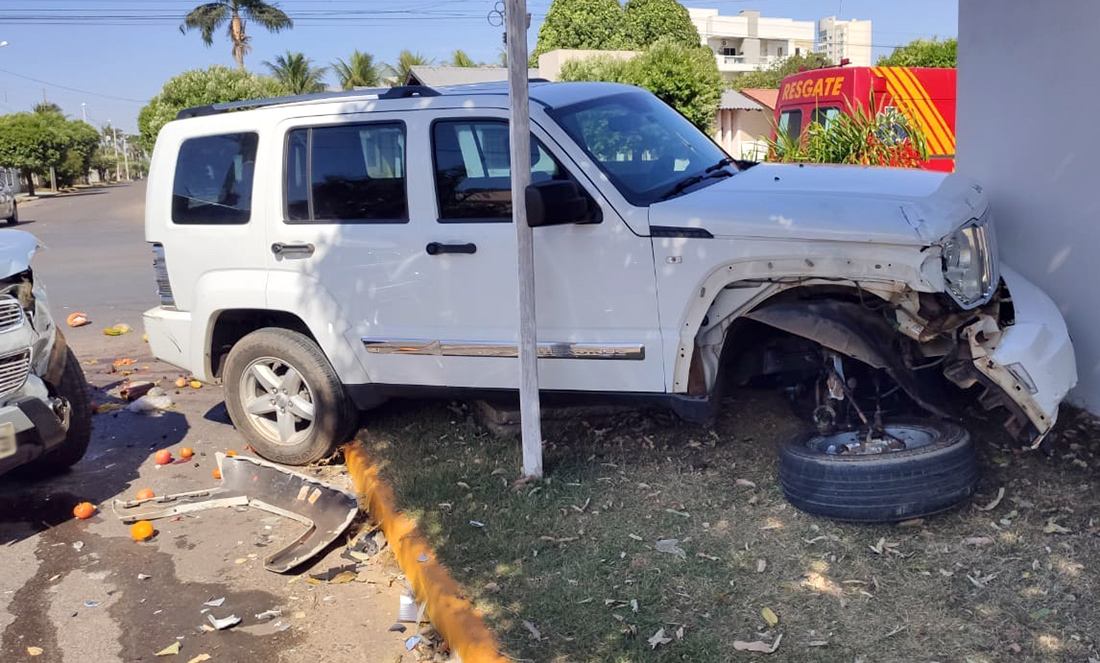 A colisão entre um Jepp Cherokee branco e uma GM S10 prata ocorreu, há pouco, na avenida Brasil com rua São Conrado, no Centro Norte. O motorista da caminhonete, que não teve a identidade divulgada, ficou ferido, foi socorrido pelo Corpo de Bombeiros e levado à Unidade de Pronto Atendimento (UPA). Ele não se machucou gravemente.
