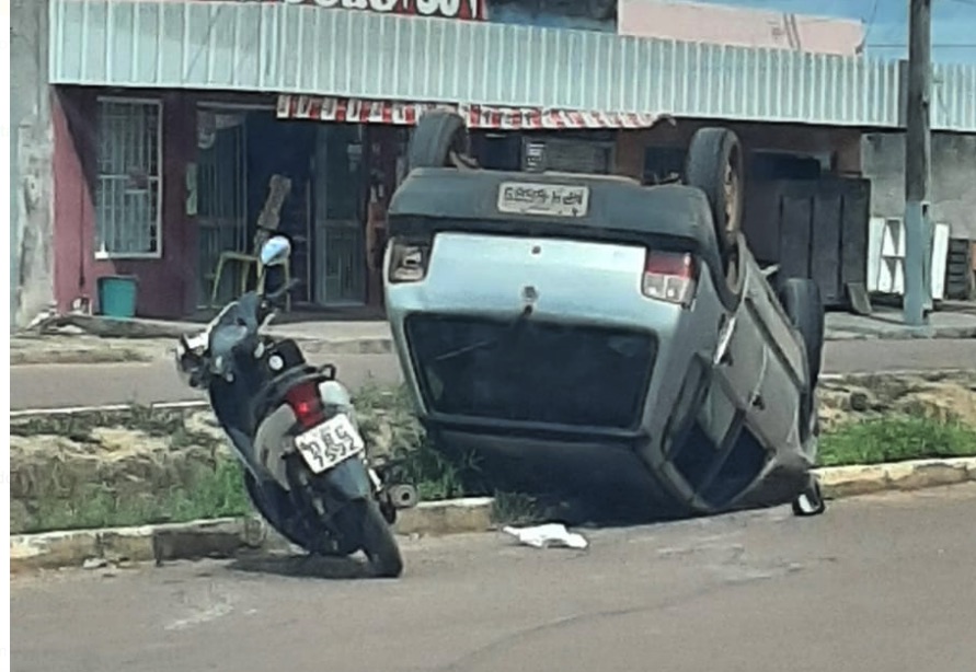 A colisão foi tão violenta que o carro tombou e ficou com as rodas para cima entre o canteiro central e a pavimentação. Uma viatura da Polícia Militar foi acionada para registrar o boletim de ocorrência.