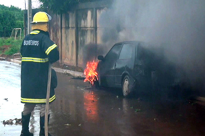 Carro Uno pega fogo em Sorriso 11 novembro 2013 2 (Drielkson Ribeiro)