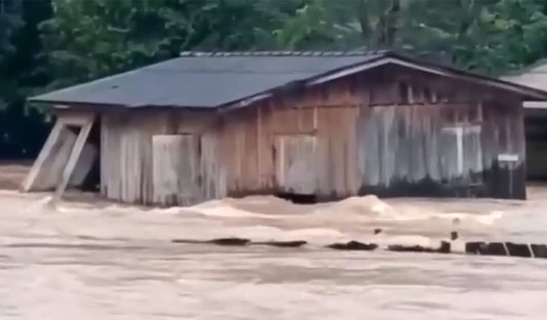Casa e ponte são arrastadas durante enxurrada em Mato Grosso e moradores ficam ilhados; assista