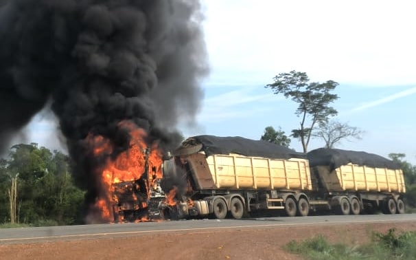 A cabine de uma carreta Mercedes-Benz ficou destruída nesta manhã, após pegar fogo na MT-423 entre União do Sul e Cláudia (169 e 90 km de Sinop, respectivamente). De acordo com uma fonte da Polícia Militar, não houve feridos. Os danos materiais são consideráveis.