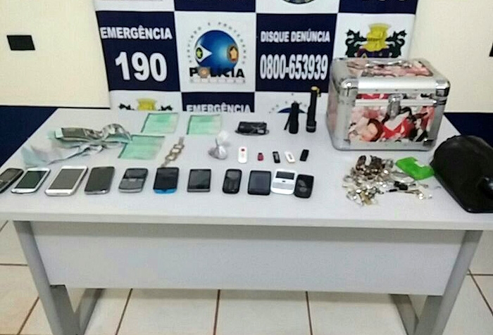 Celulares e joias recuperadas com bandidos em Peixoto junho 2014 (assessoria)