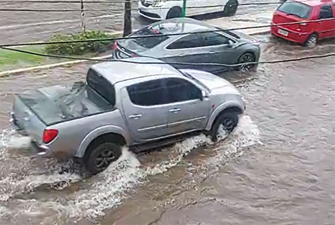 A forte chuva que está caindo em Sinop já provocou diversos pontos de alagamentos em ruas e avenidas, da região central e diversos bairros. Na Júlio Campos, por exemplo, em alguns trechos, a enxurrada passou por cima do meio-fio inundando o canteiro central, além das calçadas dos estabelecimentos, onde muitos comerciantes expõem algumas mercadorias. É o maior ponto de vendas de Sinop.