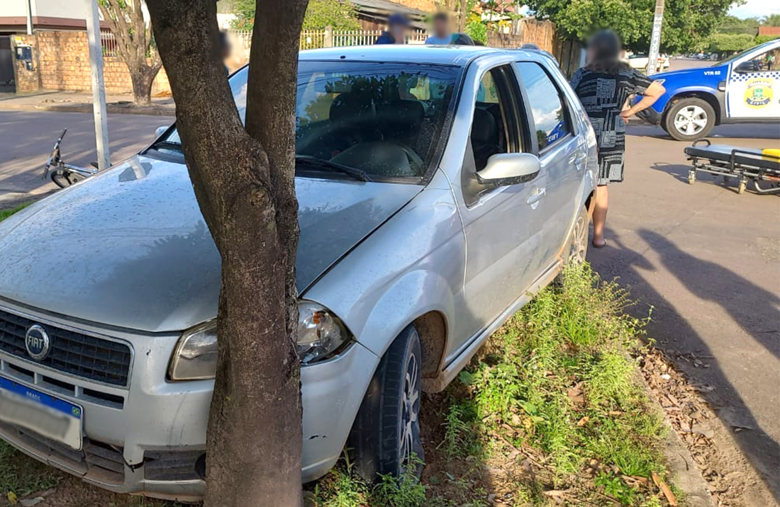 Com o impacto, o condutor do veículo perdeu o controle, subindo no canteiro e atingindo uma árvore. O carro teve o farol quebrado, danos no para-choque e o pneu esquerdo dianteiro estourado.