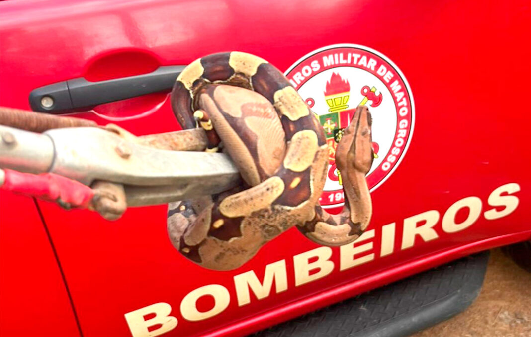 A serpente com cerca de 1,5 metros foi resgatada, ontem à tarde, na avenida Ayrton Senna, no bairro São José Operário, pelos bombeiros de Alta Floresta. A área está localizada nas proximidades de uma mata.