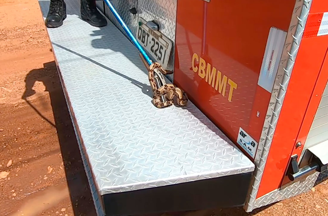 A jiboia foi capturada em uma residência na rua das Palmeiras, Jardim Panorama, em Alta Floresta. O animal não apresentava ferimentos, e foi levado até uma área de mata distante da região central, no final da tarde.