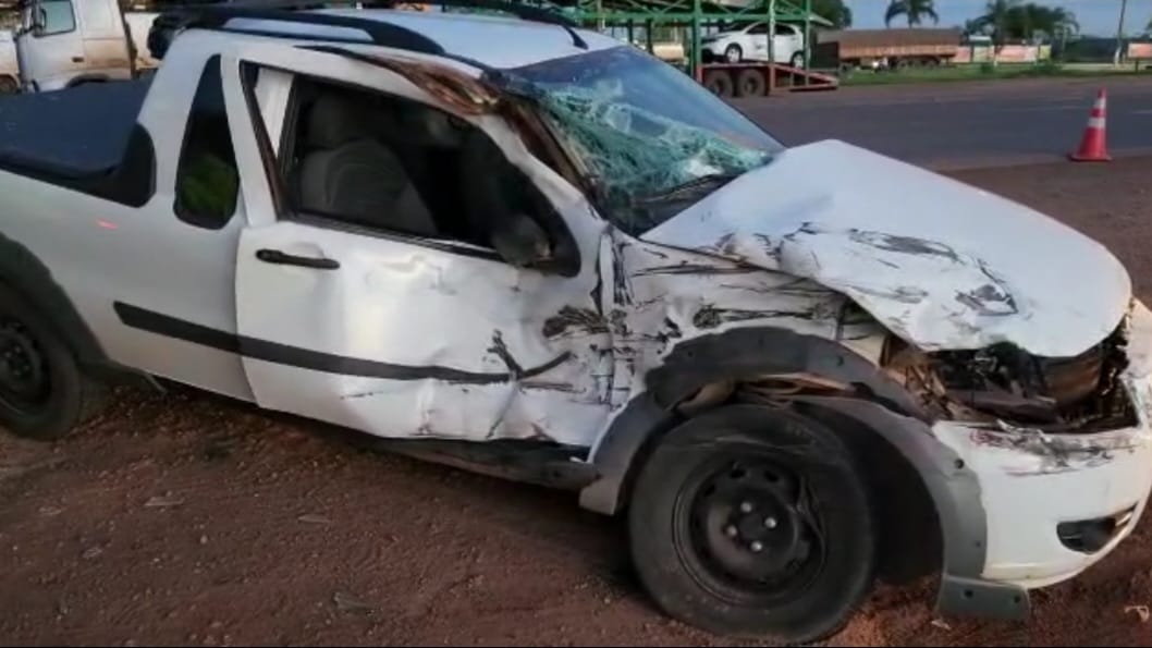 A colisão envolveu uma Ford F400 baú, carregada com baterias, e um utilitário Fiat Strada. Nenhum dos motoristas ficou ferido.