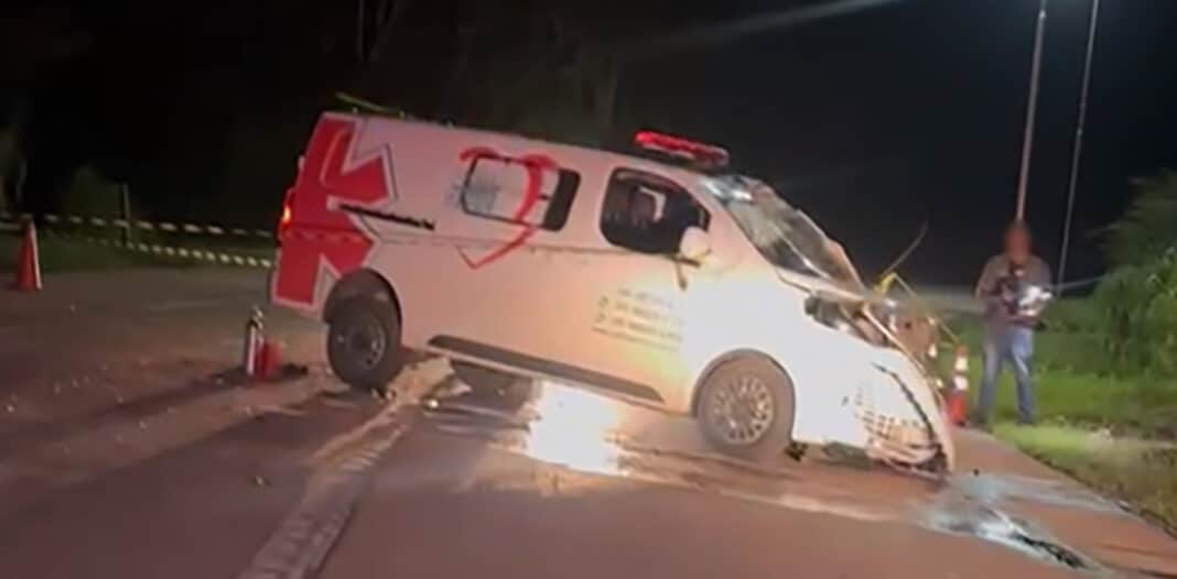 O acidente de trânsito entre uma Fiat Scudo branca e uma carreta (marca e modelos não identificados) ocorreu ontem à noite, no quilômetro 348 da rodovia estadual, na Serra do São Vicente em Santo Antônio do Leverger (34 quilômetros ao sul/sudeste de Cuiabá). A Polícia Rodoviária Federal confirmou que dois passageiros da ambulância, que não tiveram as identidades confirmadas, acabaram falecendo na localidade.