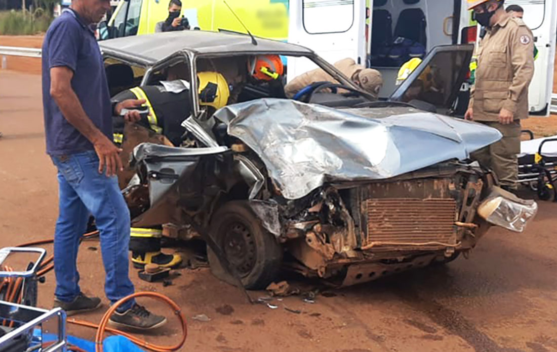 A colisão envolvendo uma Ford Ranger e um Fiat Uno ocorreu, há pouco, no quilômetro 854 da rodovia federal, no trevo que dá acesso a MT-220 (Sinop-Juara). A concessionária responsável pela administração da rodovia confirmou que três pessoas foram socorridas em estado grave e encaminhadas ao hospital regional. Uma mulher, que estava no automóvel, ficou presa às ferragens.