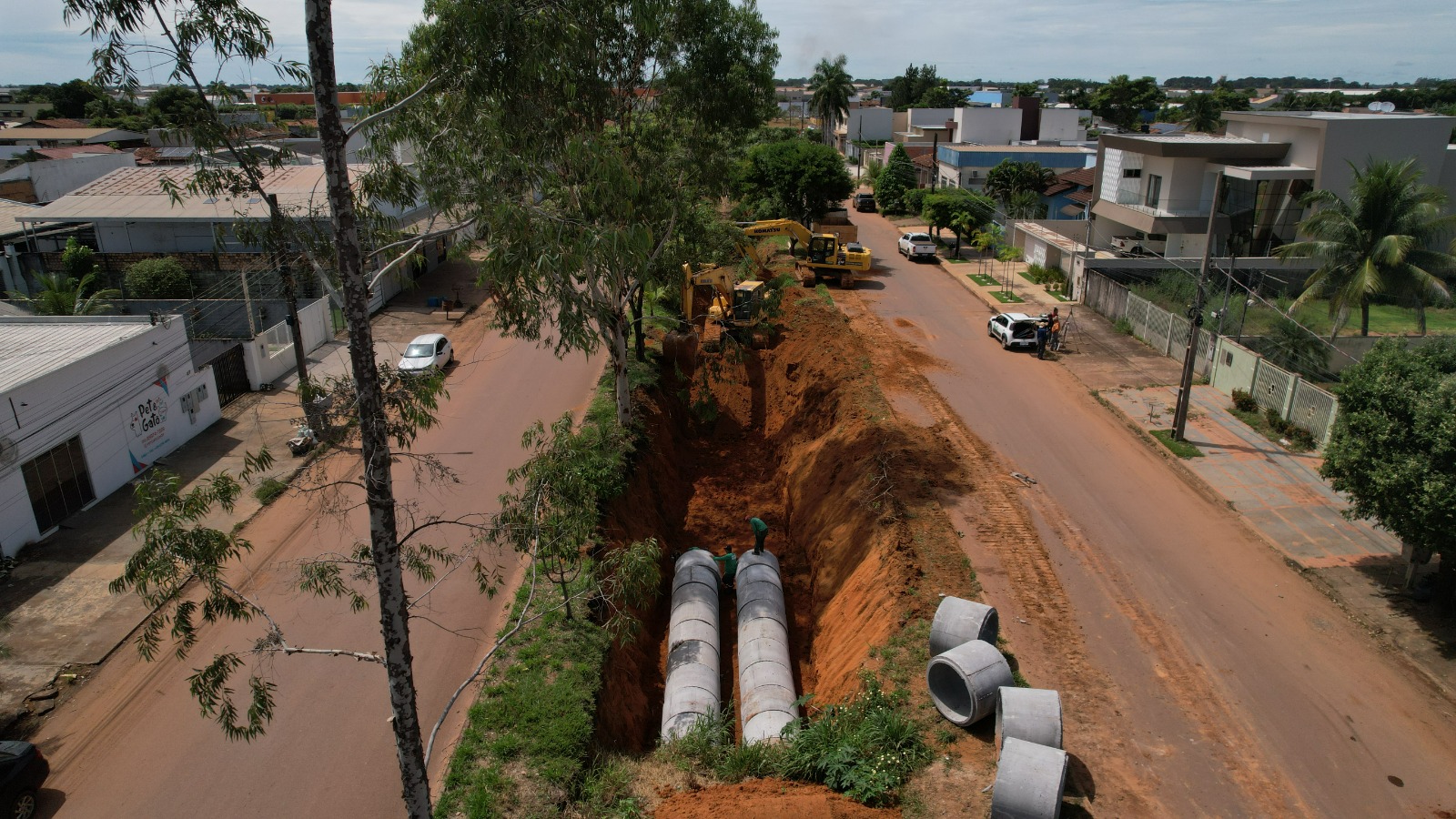 A secretaria de Obras e Serviços Urbanos iniciou, o fechamento das valetas de escoamento de água e instalação dos tubos na avenida dos Jatobás, no trecho que vai da rua das Primaveras, até a rua dos Manacás.