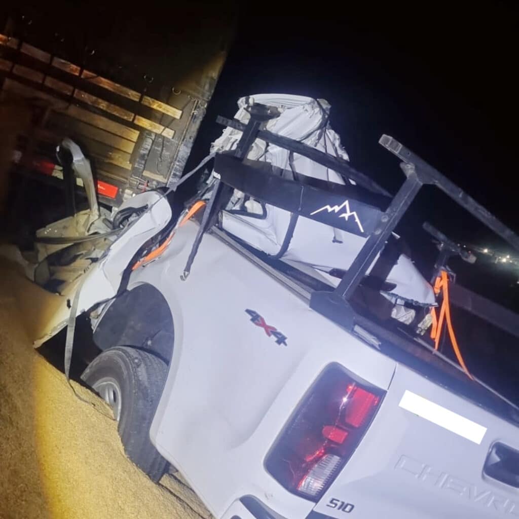 De acordo com a concessionária da rodovia, houve derramamento de uma quantidade de farelo de soja sobre o acostamento. A caminhonete colidiu na traseira da carreta, mas a dinâmica exata do acidente não foi informada. Com o impacto, a parte frontal da utilitária ficou destruída.