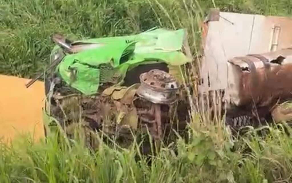 Com o impacto, a caminhonete teve o teto e a lataria da lateral esquerda arrancados, além de danos na parte motora e um pneu também arrancado. O condutor foi arremessado alguns metros após o local da colisão.