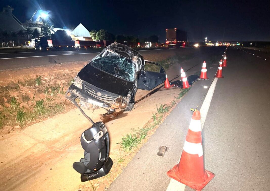 Homem morre em acidente na BR-163 em Nova Mutum; esposa e filhos socorridos