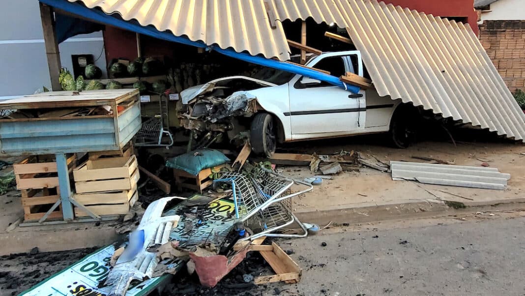 A versão inicialmente apurada é que o automóvel trafegava pela Projetada sentido avenida André Maggi, quando houve colisão com a motocicleta, que seguia no mesmo sentido. Com o impacto, o condutor do carro perdeu controle da direção, subindo na calçada e atingindo uma quitanda, derrubando parte do telhado, além de danificar grande parte da estrutura.