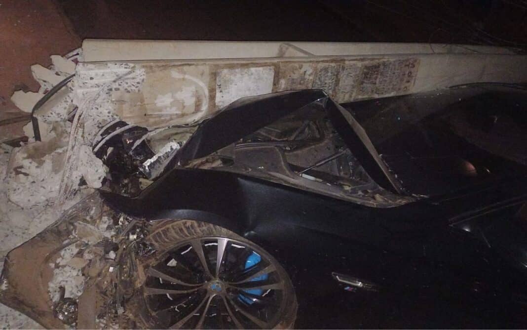 A BMW 535i colidiu contra um poste de iluminação pública, derrubando outros seis postes, que ficaram pendurados sobre a Rua M, hoje de madrugada, nos fundos da Escola Dante Martins de Oliveira, bairro José Carlos Guimarães, em Várzea Grande. Apesar da gravidade do ocorrido, não houve registro de feridos.