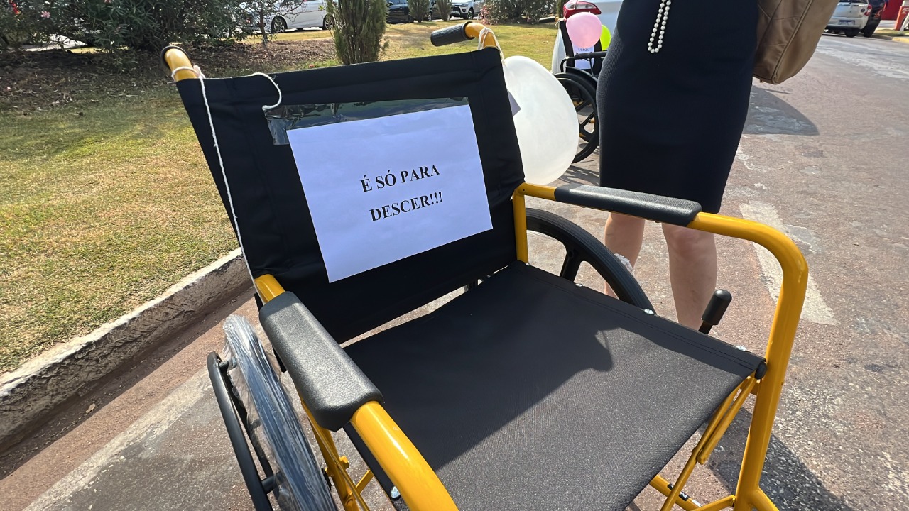 O Conselho Municipal da Pessoa com Deficiência de Sinop realizou, esta manhã, uma campanha de conscientização da população sobre a importância das vagas preferenciais, no cruzamento da avenida Júlio Campos com rua da Azaléias, na região central. No lugar dos carros estacionados no acostamento, estavam cadeiras de rodas,