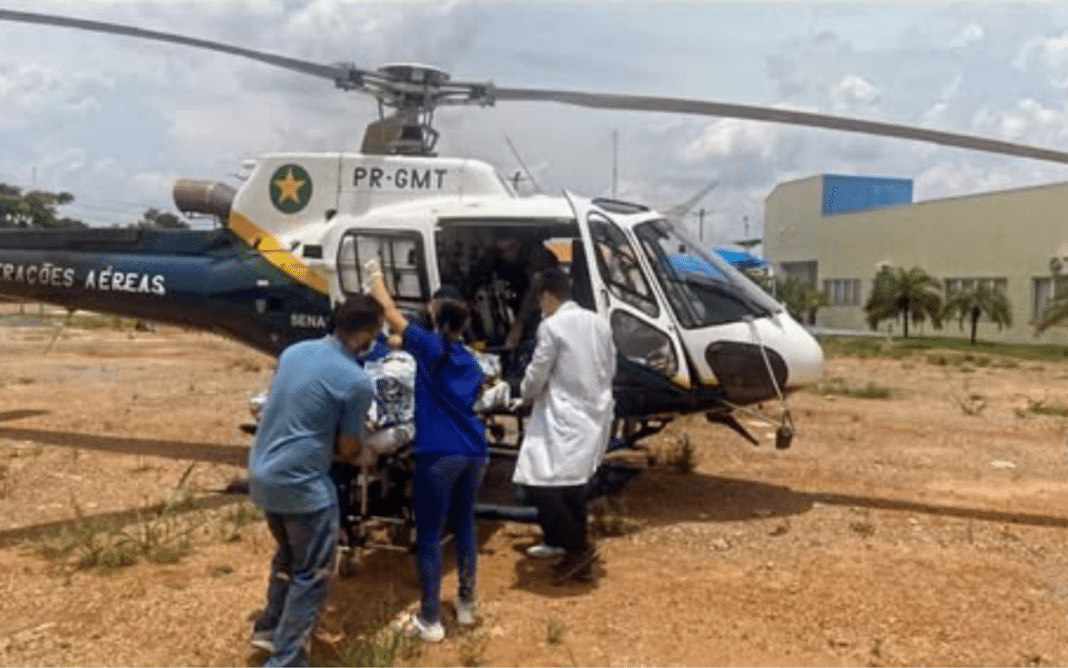 De acordo com o boletim de ocorrência, diante da gravidade da situação, e da necessidade de um atendimento rápido, a aeronave do Centro Integrado de Operações Aéreas (CIOPAER) foi acionada para realizar o transporte da vítima de um posto de saúde do município até o hospital regional de Sorriso, onde foi entregue estabilizado para a continuidade do atendimento médico.