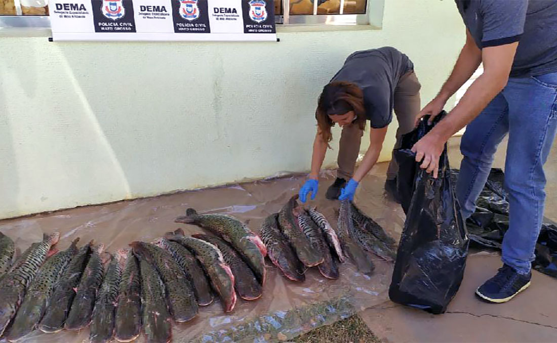 Os agentes da Delegacia Especializada do Meio Ambiente , com apoio da secretaria de Estado de Meio Ambiente apreenderam cerca de 100 quilos de pescado irregular que estava sendo transportado por um comprador, na região de Barão de Melgaço (113 quilômetros de Cuiabá), esta manhã.