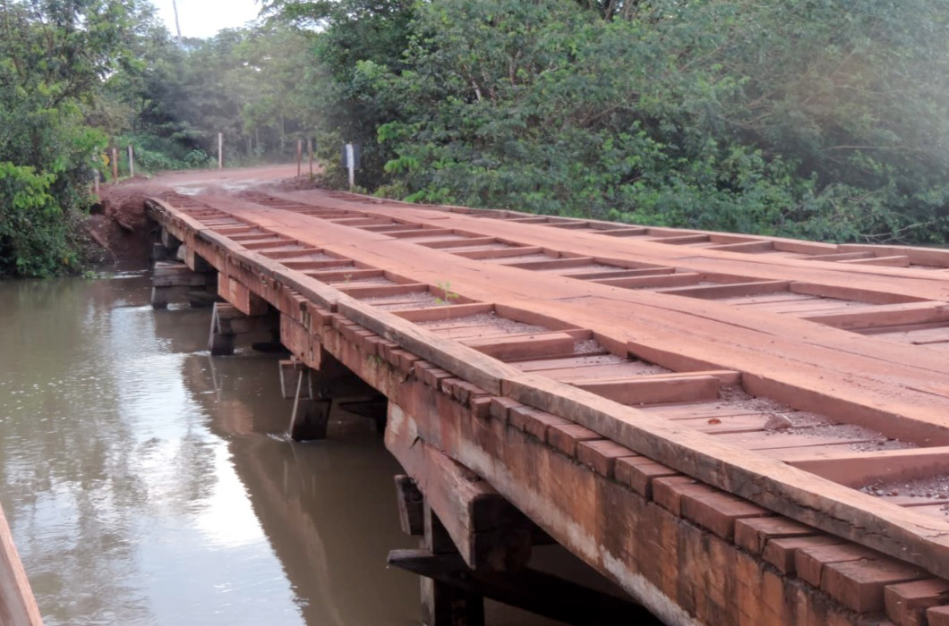 A ponte chegou a ficar submersa, durante o período de fortes chuvas registradas no primeiro quadrimestre deste ano. Devido a isso, comprometeu a parte estrutural de madeira da ponte.